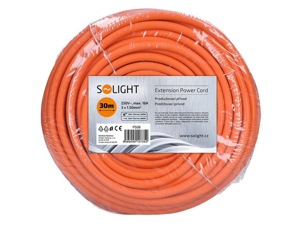 Solight prodlužovací přívod - spojka, 1 zásuvka, 30 m, 3 x 1,5mm2, oranžová