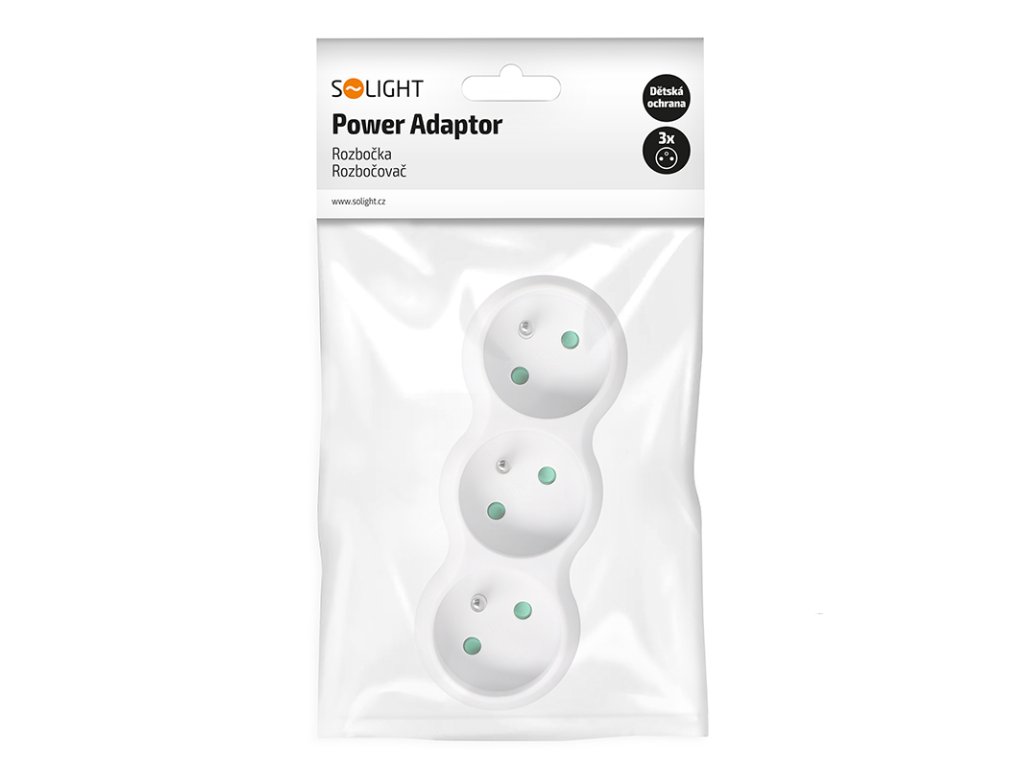 Rozbočka se třemi zásuvkami zvládnou celkovou zátěž až 3680 W a umožní připojit jakýkoli spotřebič v kuchyni, obýváku nebo dílně. Díky natočení zásuvek lze lehce manipulovat s přívodními šňůrami ve všech zásuvkách. Všechny kabely směřují směrem dolů a netrčí různě v prostoru. Zásuvky jsou navíc vybaveny dětskými pojistkami, které zajistí bezpečný provoz i v domácnostech s dětmi. Díky kompaktnímu provedení nezabere zbytečně místo.