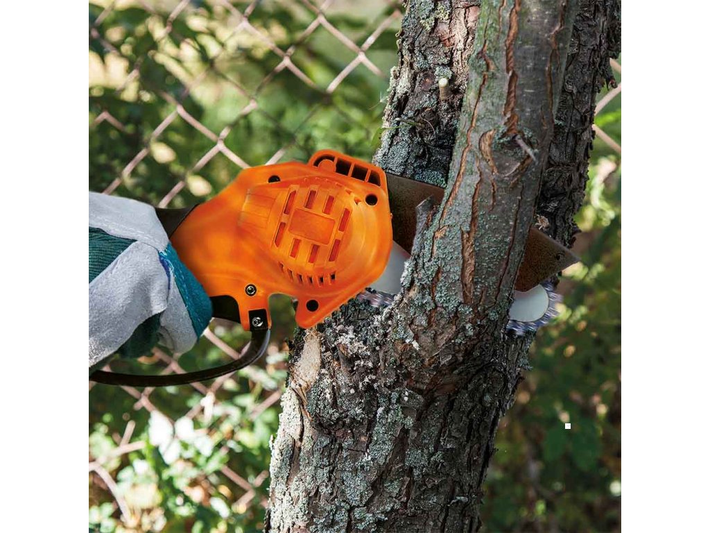 Pila je vybavena bezpečnostními prvky, které zajišťují vyšší ochranu při práci – například pojistkou proti nechtěnému spuštění a ochranným krytem řetězu. Protiskluzová rukojeť zajišťuje komfortní a bezpečné držení i při delším používání.