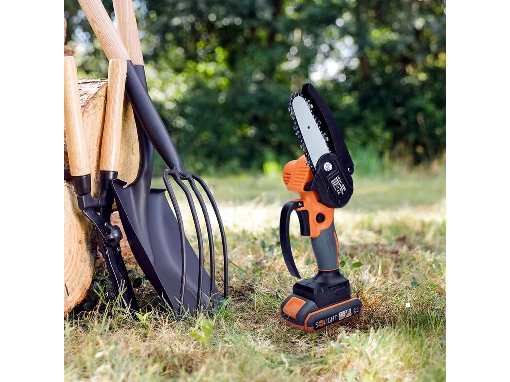 Solight ruční akumulátorová pila s lištou o délce 100 mm je skvělým pomocníkem pro prořezávání stromků, keřů a drobných dřevin. Díky kompaktní konstrukci, nízké hmotnosti a snadné ovladatelnosti je ideální jak pro domácí použití, tak pro profesionální údržbu zeleně. Výkonný motor poháněný moderní Li-Ion baterií nabízí plynulý chod a dostatečnou sílu pro běžné zahradnické práce.