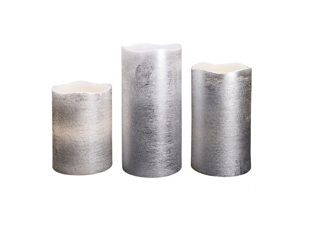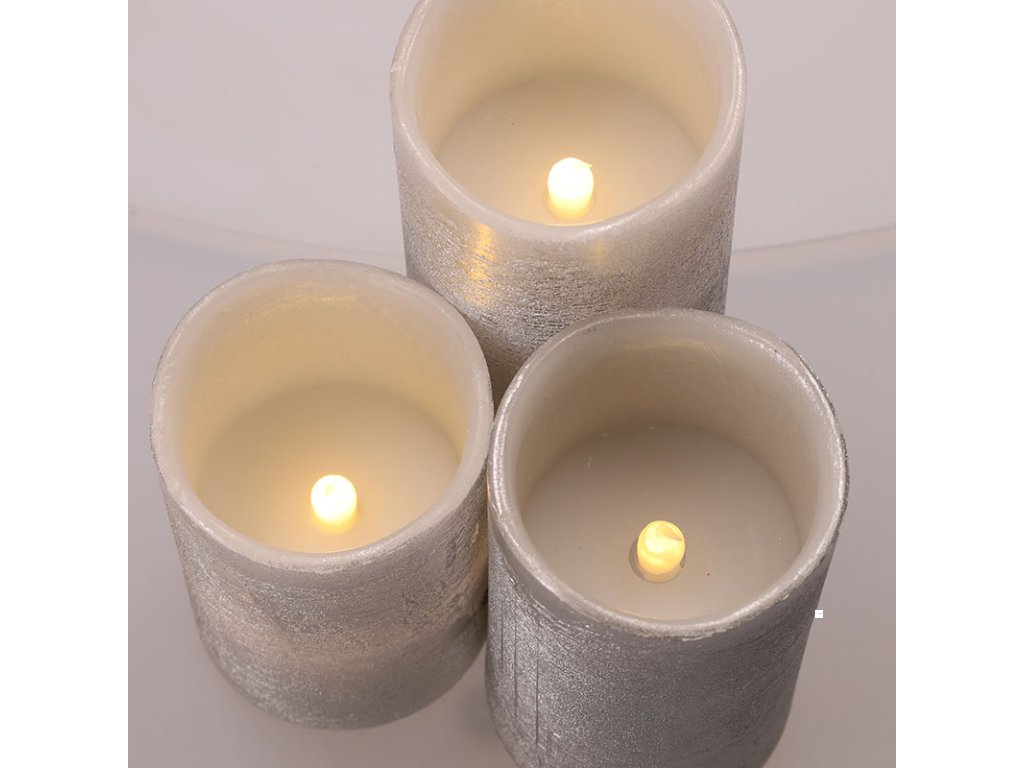- sada LED svíček z vosku s přirozeně blikajícím plamenem ve stříbrné barvě