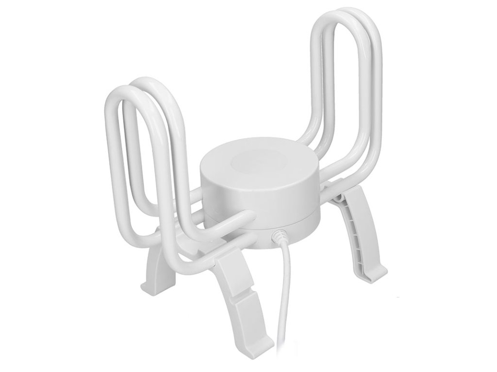 Sušák obuvi a rukavic pro až 2 páry najednou. Ovládání pomocí přepínače zapnutí/vypnutí se světelným indikátorem. Příkon 40 W a napájení 220–240 V/50Hz. Rozměry: 26 cm (šířka) x 30 cm (výška) x 25,5 cm (hloubka). Hmotnost: přibližně 0,9 kg. Ideální pro efektivní sušení obuvi a rukavic.