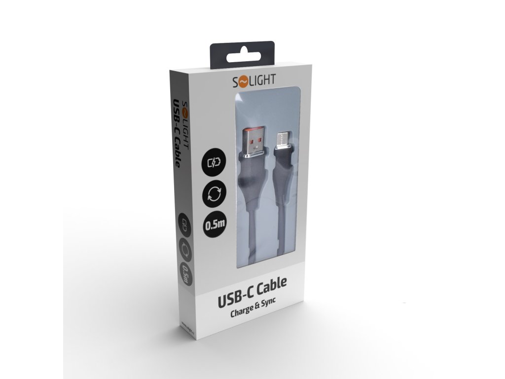 Solight USB-C kabel, USB 2.0 A konektor - USB-C 3.1 konektor, silikon, 0,5m