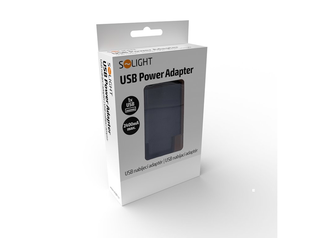 Solight USB nabíjecí adaptér, 1x USB, 2400mA, AC 230V, černý