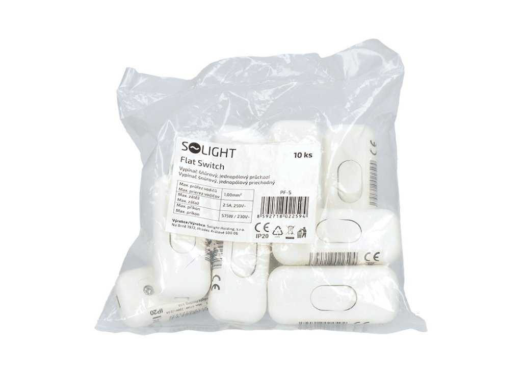 Solight vypínač šňůrový, jednopólový průchozí, bílý
