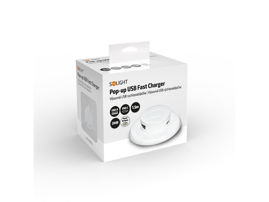 Solight výsuvná nabíječka USB A+C 24W PD, bílá