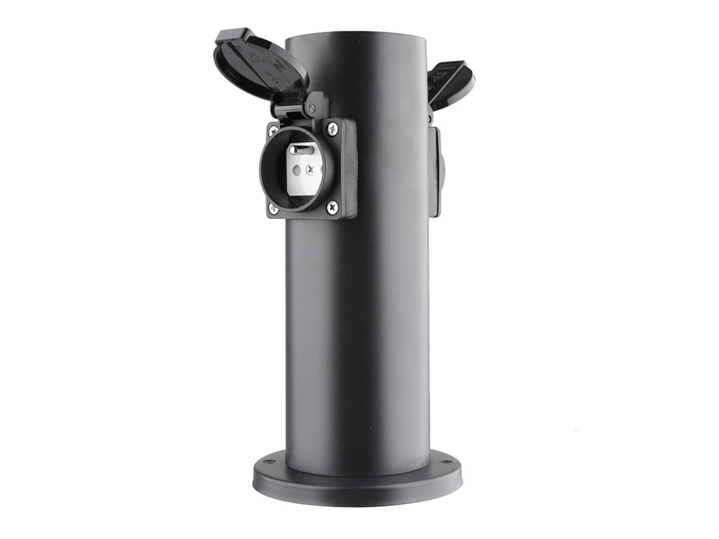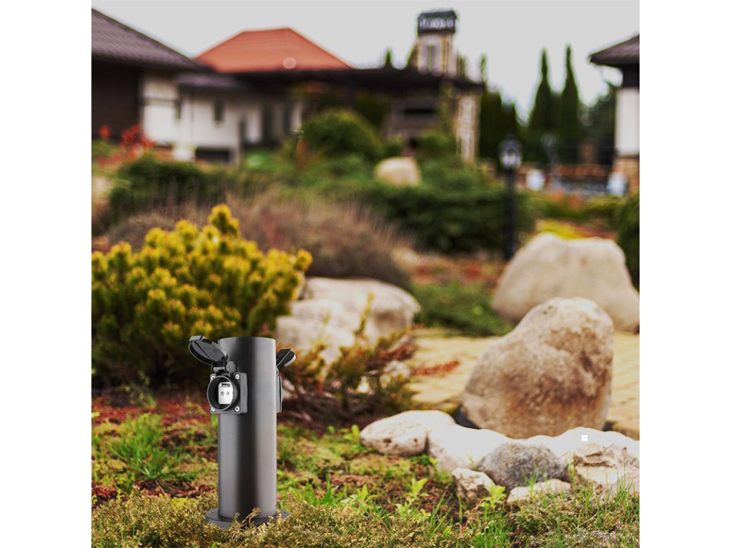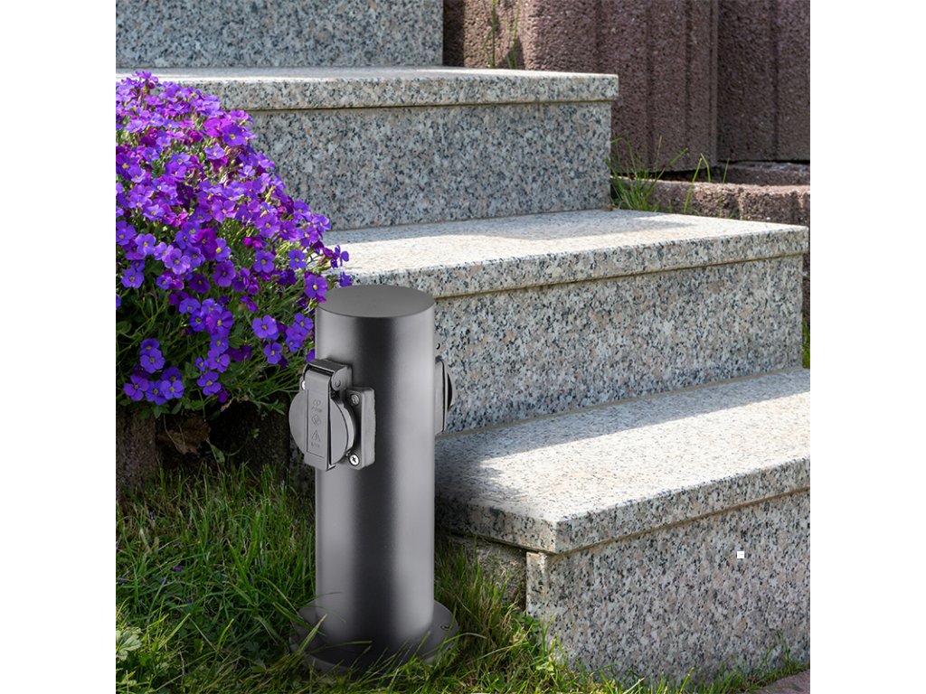 Dvě zásuvky s dětskými pojistkami jsou chráněny samouzavíratelnými krytkami, které brání vniknutí vlhkosti a nečistot. Díky krytí IP44 je sloupek vhodný i pro použití za deště nebo ve vlhčím prostředí. Zásuvky zvládnou zátěž až 3680 W (16 A při 230V~), což je ideální pro venkovní osvětlení, zahradní techniku i běžné spotřebiče. Vhodný pro domy, pergoly i firemní areály.