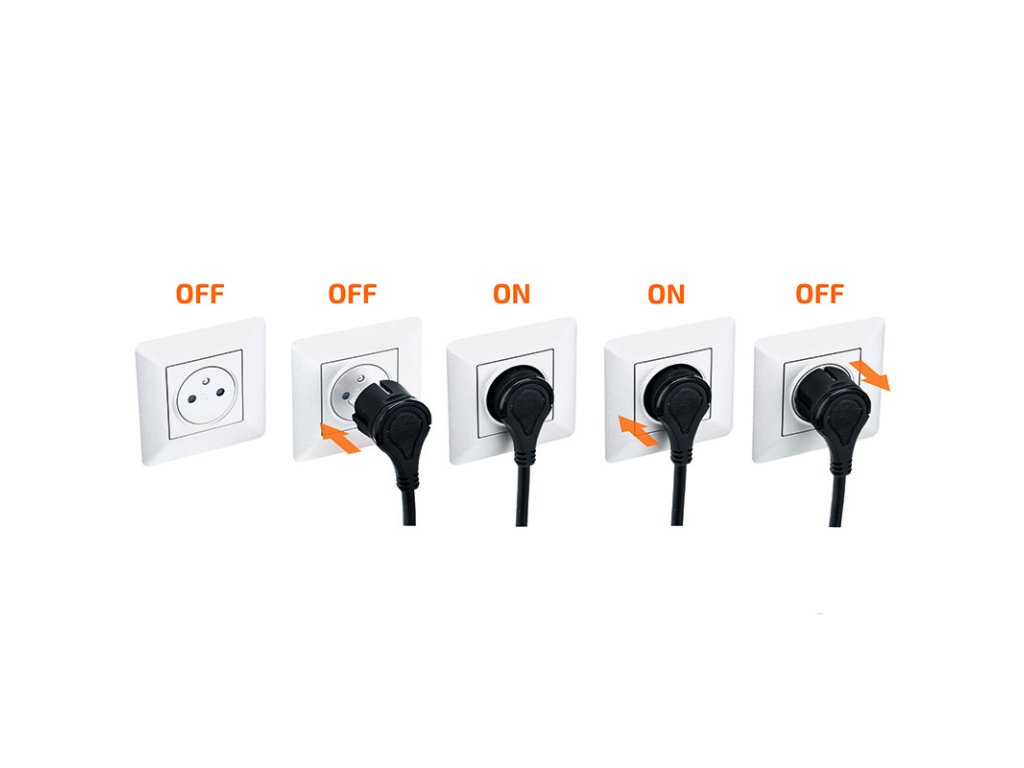- posuvný střed jako vypínač přívodu elektrické energie. Zásuvka je odpojená od elektrického obvodu dokud nedojde k zatlačení pohyblivého středu do obvodového krytu. Přívodní šňůra zůstane zapojená v zásuvce, propojené kontakty jsou jištěny západkou. Opětovným zatlačením na střed dojde k uvolnění západky a vysunutí pohyblivého středu k povrchu zásuvky. Elektrický obvod je rozpojený, zásuvka vypnutá, přívodní šňůra zůstává zastrčená. Maximální bezpečnost a ochrana, navíc zvýšená dětskými pojistkami.