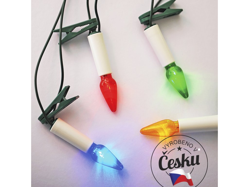 Tradiční osvětlovací souprava se skleněnými žárovkami tvaru FELICIA.Zvyk zdobit stromek svíčkami sahá do 16. století v Německu, kdy protestanti poprvé umisťovali opravdové plamínky na větve, aby oslavili narození Krista.