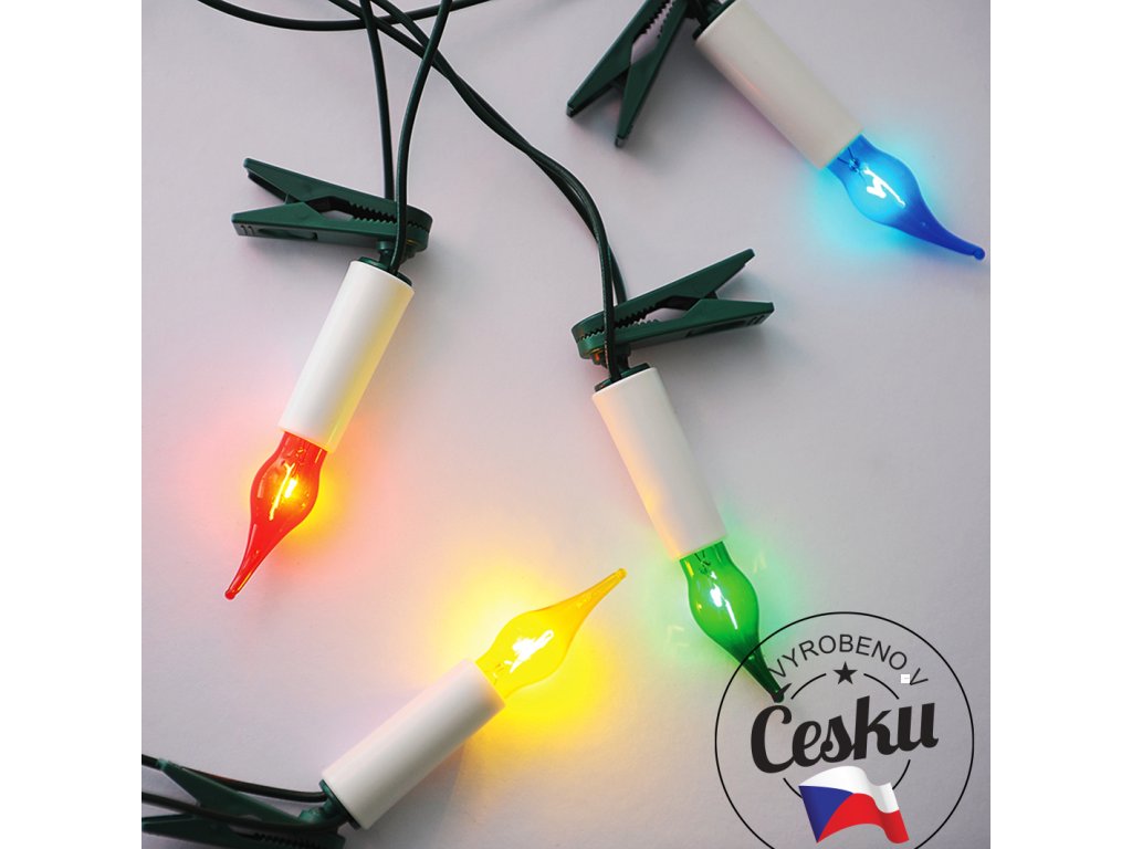 NOVINKA !! Tradiční skleněné žárovky ruční výroby HELIA barevná s taženou žárovkou,34 žárovek x 7V/0,2Adélka řetězu 20m,