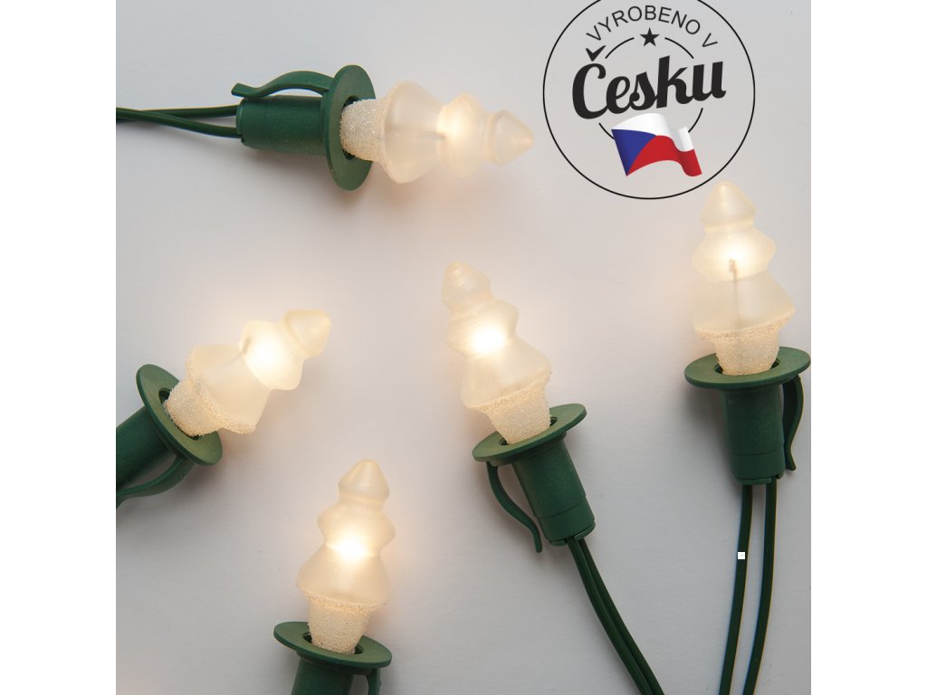 Tradiční osvětlovací souprava se skleněnými žárovkami tvaru STROMEK.Jehličnany představují věčný život díky své stálé zeleni i v zimě. Pro křesťany je stromek připomínkou ráje (strom poznání) a vítězství života nad smrtí.