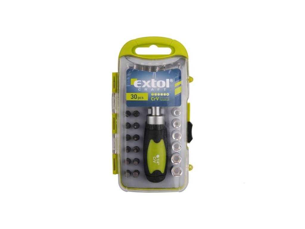 Šroubovák ráčnový s ořechy a hroty, sada 30ks, EXTOL CRAFT, 53091