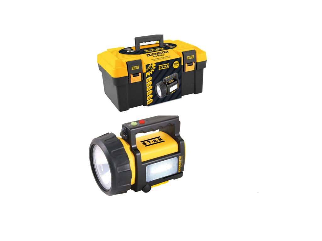 Dobíjecí LED reflektor v elegantním plastovém boxu, funkcí "lucerna", výstražným světlem a Powerbankou. Více než 8 hodin nepřetržitého provozu po kompletním nabití . Odolává povětrnostním vlivům a je odolný proti otřesům.Adaptéry 230V a 12V v balení) . Široké využití např. pro elektrikáře, stanování a všechny outdoorové aktivity.