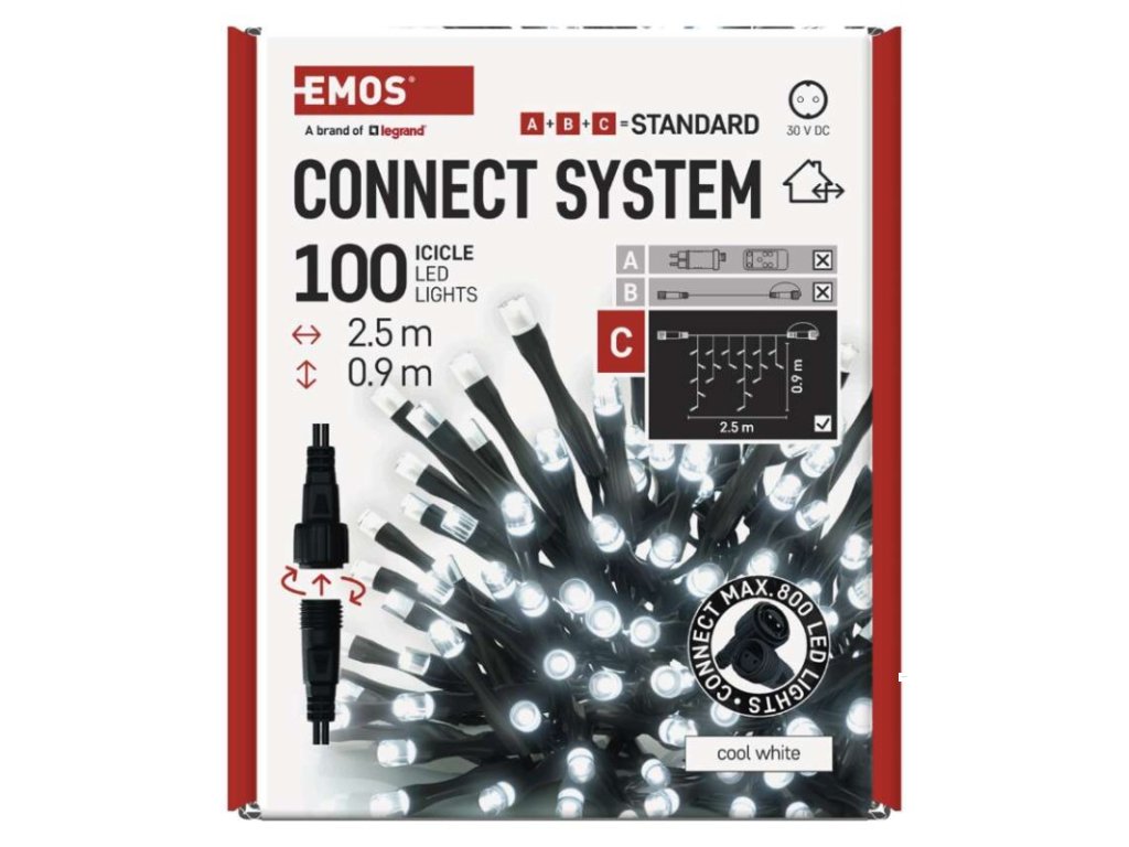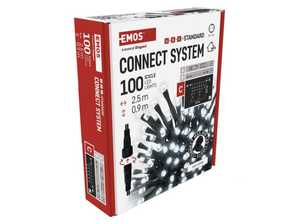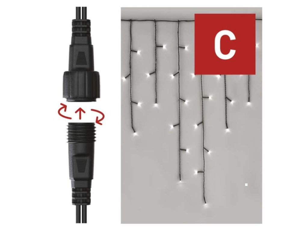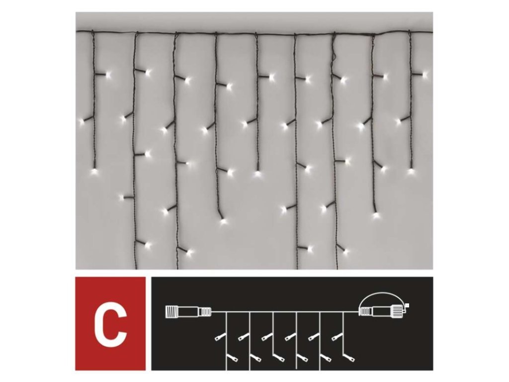 Standard LED spojovací vánoční řetěz – rampouchy, 2,5 m, venkovní, studená bílá