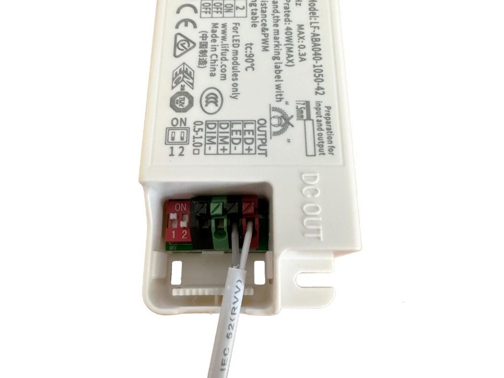 Stmívatelný driver LIFUD 0-10V je vhodný pro všechny 40W LED panely ( z naší nabídky s nastavením 1000mAh 1.ON / 2.OFF ).