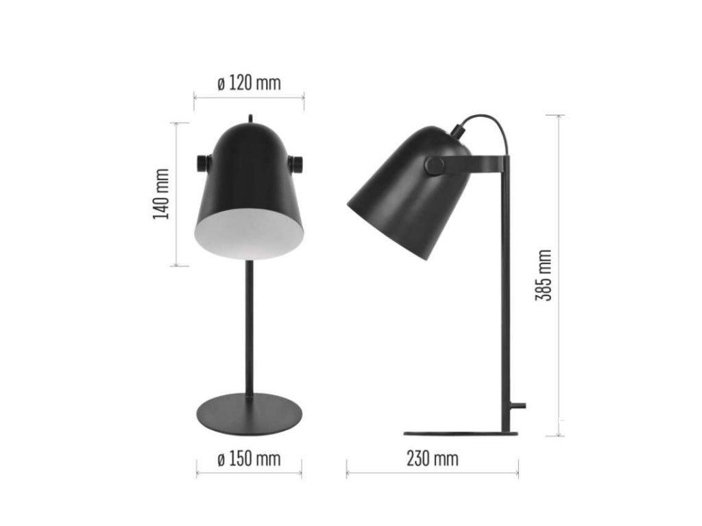 barva: černá|barva světla: neuvádí se|činitel stárnutí: neuvádí se|čip LED: neuvádí se|délka přívodního kabelu: 1,5 m|energetická třída: neuvádí se|energetická třída (od 1.9.2021): neuvádí se|index podání barev (CRI): neuvádí se|integrovaná nabíjecí baterie: ne|krytí: IP20|materiál: kov|max. výkon: neuvádí se|napájecí zdroj: 220–240 V|napájecí zdroj součástí balení: ano|napětí: 220–240 V|obsah rtuti: neuvádí se|patice (uchycení žárovky): E27|počet LED: 0|počet spínacích cyklů: neuvádí se|příkon: 25 W|prodejní obal: 1 ks, krabice|rozměr: 150 × 150 × 385 mm|rychlost náběhu na 100 %: neuvádí se|stmívání: ne|světelný tok: neuvádí se|teplota chromatičnosti: neuvádí se|typ napájení: síť|účiník: neuvádí se|USB port: ne|životnost: neuvádí seDoplňkové parametry