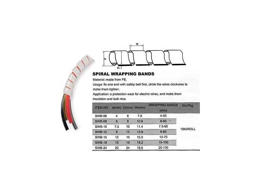 Svazkovací spirála SWB-15 pro bandáž o průměru 12-75mm, balení 10mDoplňkové parametry