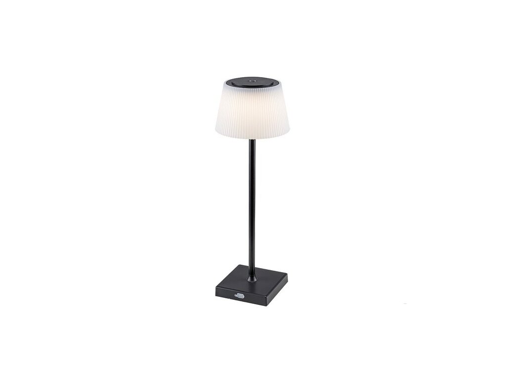 Stolní lampa Taena v moderním stylu nabízí mnohem více než průměrný model vyrobený pro podobný účel. Svítilna s extra funkcemi je skvělou volbou do obývacího pokoje nebo ložnice. Model vyrobený z kovu a černé barvy doplňuje bílá, mírně se rozšiřující plastové stínítko připomínající plisovanou sukni a čtvercový ozdobný podstavec. Taena má zabudovaný LED světelný zdroj s výkonem 4W a životností 25000 hodin, světelný tok svítidla: 200 lumenů, světelný tok světelného zdroje je 330 lumenů. Barevnou teplotu světelného zdroje lze nastavit mezi 3000-5000 K a měnit lze i jas. Obě funkce lze ovládat pomocí dotykového spínače. Lampa má 3,7V baterii s kapacitou 1800 mAh a lze ji nabíjet pomocí USB kabelu. Krytí IP44 zajišťuje ochranu proti pronikání pevných částic o průměru větším než 1 mm, jakož i proti stříkající vodě z jakéhokoli směru. Rozměry stolní lampy jsou následující: výška 380 mm, průměr 130 mm, montážní průměr 95 mm.