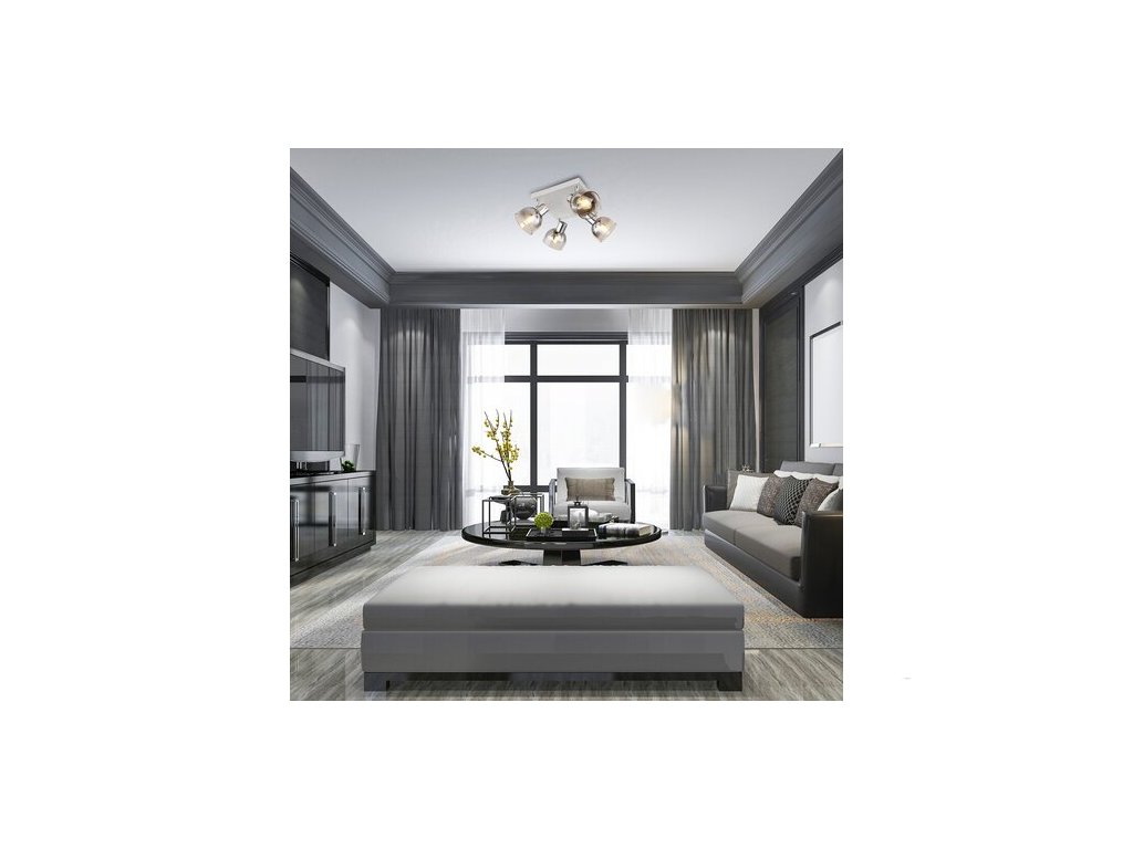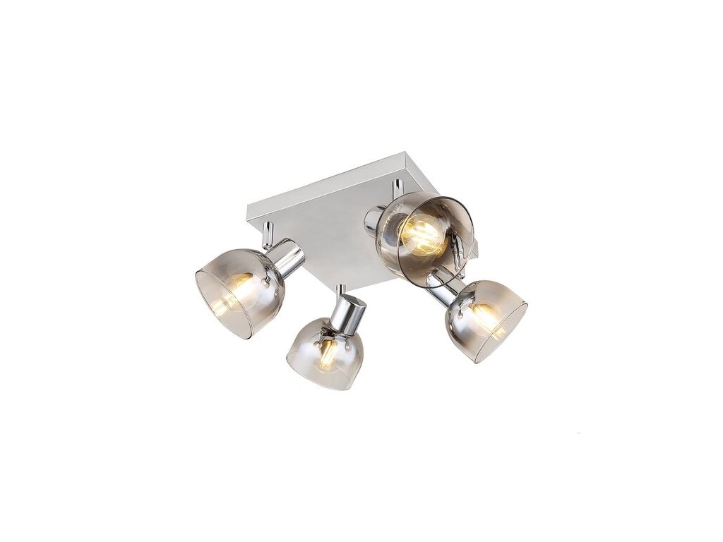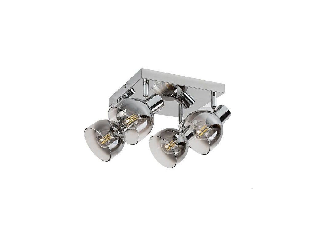 Moderní stropní bodové svítidlo Tarien se 4 žárovkami může být skvělou volbou do různých místností vašeho bytu: můžete jej namontovat do obývacího pokoje, ložnice, jídelny nebo i do kuchyně. Železné svítidlo v barvě chromu doplňují stínítka ve tvaru deštníku z tónovaného skla. Svítidlo Tarien lze připevnit ke stropu pomocí velké čtvercové dekorativní základny. Toto svítidlo lze použít se čtyřmi žárovkami, každá s výkonem do 40W. Typ patice je E14. V závislosti na vašem vkusu a místě instalace si můžete pro toto svítidlo zvolit teplé nebo přírodní bílé zdroje světla. Díky flexibilním hlavám svítidla můžete světlo nasměrovat dle vlastního uvážení. Rozměry svítidla Tarien jsou 220x220mm, vzdálenost od stropu je 150mm. Tento model je dodáván bez světelných zdrojů.