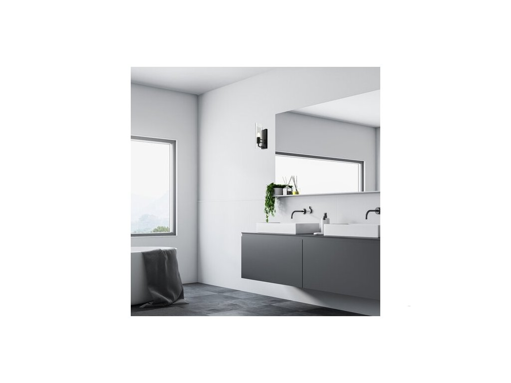 Koupelnové nástěnné svítidlo Teodoro je skvělou volbou pro vaši moderní koupelnu, kde jej lze nainstalovat v blízkosti zrcadla, aby poskytovalo světlo potřebné pro vaše činnosti. Černá kovová lampa je doplněna průhledným skleněným stínítkem a lze připevnit vertikálně na stěnu pomocí obdélníkového ozdobného podstavce. Šikmo odříznuté, válcovité stínítko s otevřeným dnem umožňuje, aby byl světelný zdroj plně viditelný, proto se vyplatí používat tento model s estetickou žárovkou jiného tvaru, než je tradiční žárovka. Svítidlo Teodoro lze provozovat s jedním světelným zdrojem s maximálním příkonem do 12 W, typ patice E14. Pro dosažení čistého a moderního vzhledu koupelny se doporučuje použít zdroj přirozeného bílého světla. Krytí IP44 zaručuje, že tento model Teodoro je chráněn proti vniknutí pevných předmětů větších než 1 mm a proti stříkající vodě z jakéhokoli směru. Výška nástěnného koupelnového svítidla je 270 mm, vzdálenost od stěny je 120 mm a průměr stínítka je 80 mm.