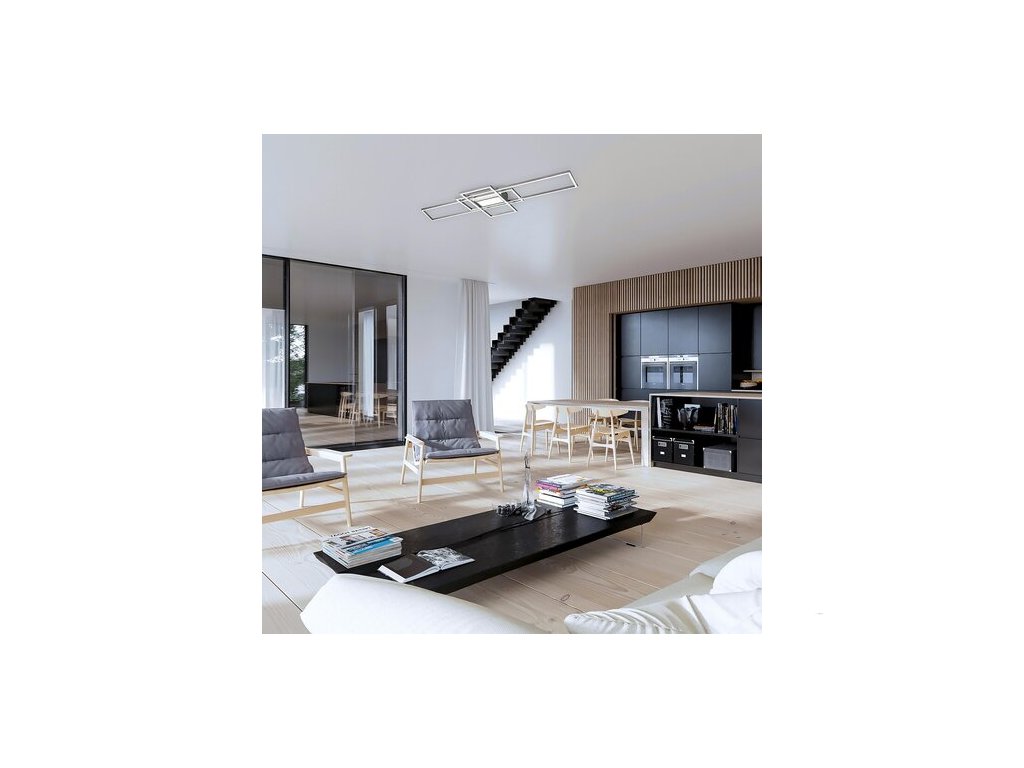 Stropní svítidlo Thabita, které se skládá z kombinace hranatých tvarů, bude skutečně trendy a všestranným kouskem zařízení vašeho moderního obývacího pokoje, jídelny nebo ložnice. Kovové svítidlo v saténové chromové barvě je doplněno o bílá plastová stínítka a lze jej upevnit na strop pomocí malého čtvercového dekorativního podstavce. 3 protínající se obdélníkové prvky zajišťují jedinečný vzhled modelu Thabita. Svítidlo obsahuje vestavěný LED světelný zdroj s výkonem 54W a světelným tokem 4200 lumenů, přičemž jeho barevnou teplotu lze nastavit v rozmezí 3000-6500K dle vaší potřeby. Toto svítidlo je také stmívatelné, to znamená, že jeho jas lze nastavit dle přání. Jas a funkci nočního osvětlení lze ovládat pomocí dálkového ovladače, zatímco teplotu barev a funkci paměti lze ovládat dálkovým ovladačem nebo nástěnným vypínačem. Rozměry stropního svítidla jsou následující: šířka 1 050 mm, výška 420 mm, vzdálenost od stropu 65 mm. Na tento model poskytujeme 5letou záruku.