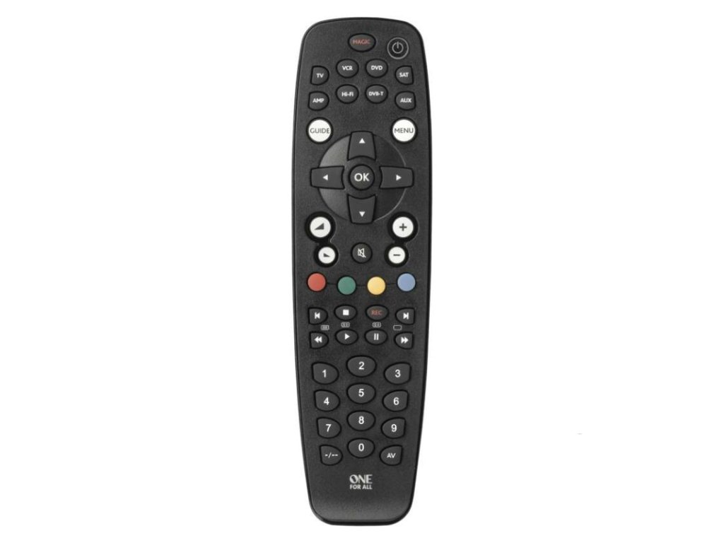 baterie součástí ovladače: ne|dosah: 15 m|funkce combi control: ne|funkce makro: ne|funkce učení: ne|garance podpory ovládání všech značek: ano|hmotnost: 80 g|modelová řada: Basic|napájení: 2× AAA|nastavení a aktualizace přes www.simpleset.com: neuvádí se|paměť kódů po vyjmutí baterií: ano|počet možných ovládaných zařízení: 8|podsvícení kláves: ne|předprogramované kódy: ne|přímá volba zařízení: ano|přímé nastavení kódu: ano|prodejní obal: 1 ks, blistr|rozměr: 24 × 50 × 182 mm|servisní aktualizace: ano|simple set nastavení: ne|určeno pro: TV, DVB-T, SAT, KAB TV, IPTV, DVD, Blu-ray, Video, Zesilovač, Tuner, Domácí kino, CD, iPod Dock|vyhledání kódu: manuální|zámek hlasitosti: ano|změna nastavení ovládacího tlačítka zařízení: neDoplňkové parametry