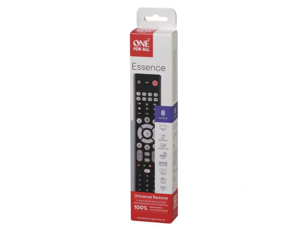 baterie součástí ovladače: ne|dosah: 15 m|funkce combi control: ne|funkce makro: ano|funkce učení: ano|garance podpory ovládání všech značek: ano|hmotnost: 119 g|modelová řada: Essence|napájení: 2× AAA|nastavení a aktualizace přes www.simpleset.com: ne|paměť kódů po vyjmutí baterií: ano|počet možných ovládaných zařízení: 8|podsvícení kláves: ne|předprogramované kódy: ano|přímá volba zařízení: ano|přímé nastavení kódu: ano|prodejní obal: 1 ks, papírová krabička|rozměr: 20 × 46 × 223 mm|rychlý přístup k oblíbené aplikaci: ano|servisní aktualizace: ano|simple set nastavení: ano|určeno pro: TV, DVB-T, SAT, KAB TV, IPTV, Zesilovač, Tuner, Domácí kino, Sound Bar|vyhledání kódu: manuální|zámek hlasitosti: ano|změna nastavení ovládacího tlačítka zařízení: neDoplňkové parametry