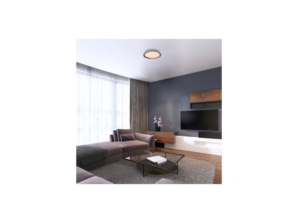 Díky zdrženlivému designu a výraznému jasu bude velké kulaté stropní svítidlo Valter skvělou volbou téměř v každém moderním obývacím pokoji, ložnici nebo pracovně. Tento model sestávající z hnědého kovového svítidla a bílého plastového stínítka nenápadně splývá se světlou barvou stropu. Svítidlo Valter obsahuje vestavěný LED světelný zdroj šetřící energii s výkonem 36 W, světelným tokem 2 250 lumenů a životností 30 000 hodin. Barevná teplota inteligentní žárovky je 3 000 K a podle toho září teplým bílým světlem a vytváří v místnosti útulnou intimní atmosféru. Toto svítidlo je stmívatelné, to znamená, že jas lze nastavit ve 3 krocích pomocí nástěnného vypínače. Průměr stropního svítidla Valter je 515 mm, vzdálenost od stropu je 80 mm.