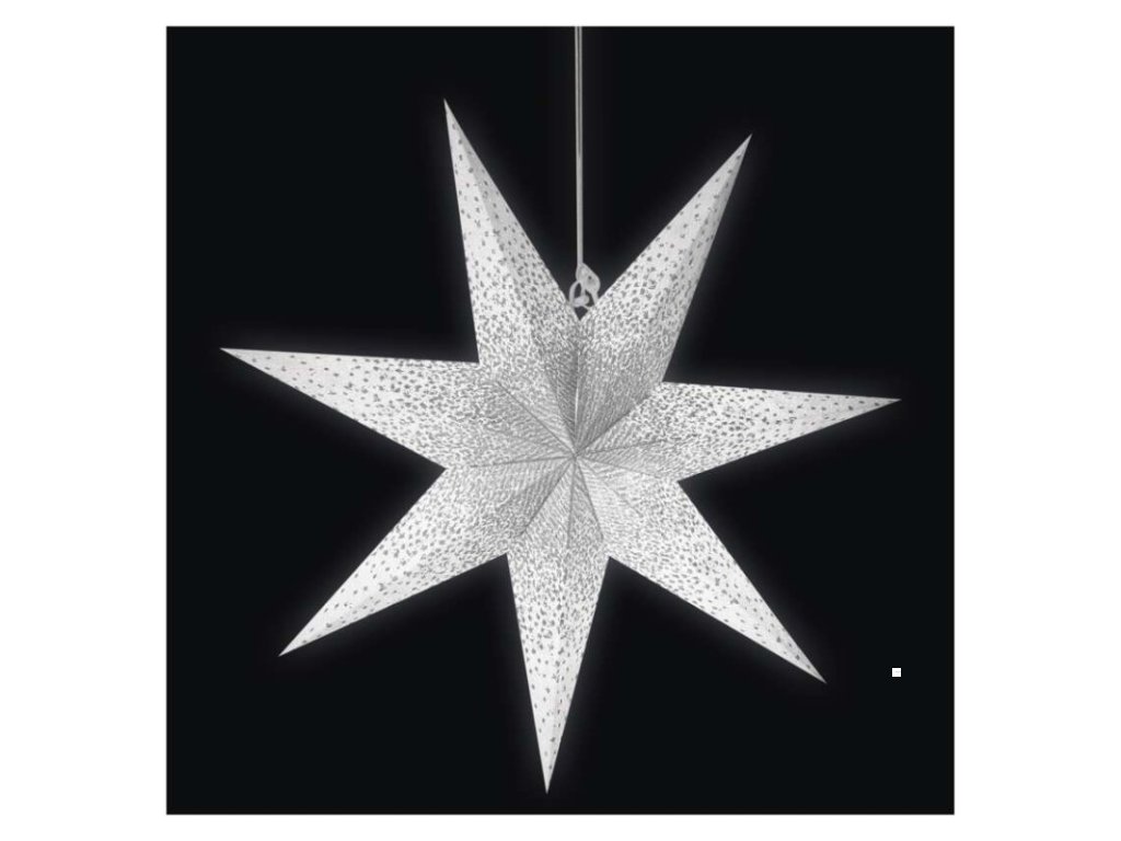 Vánoční hvězda papírová závěsná se stříbrnými třpytkami ve středu, bílá, 60 cm, vnitřní