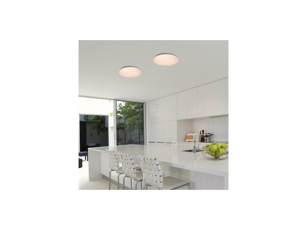 Kulaté stropní svítidlo Vendel se vyznačuje jednoduchým čistým designem, díky kterému může být tento model decentním praktickým kusem nábytku téměř v každém moderním obývacím pokoji či ložnici. Pokud hledáte centrální zdroj světla do místnosti, Vendel může být vynikající volbou se svými velkými rozměry a značnou svítivostí. Bílé tělo svítidla vyrobené z kovu je doplněno o bílé plastové stínítko. Vendel má zabudovaný LED světelný zdroj energetické třídy G, který má výkon 18 W, svítivost 1450 lumenů se stínítkem, 1800 lumenů bez stínítka a skutečně fantastickou životnost: 50 000 hodin! Světelný zdroj s barevnou teplotou 3000 K vyzařuje teplé bílé světlo, a proto je tato stropní svítilna obzvlášť dobrou volbou do ložnice, kde v hodinách před spaním pomáhá vytvářet útulnou, domácí atmosféru. Rozměry stropního svítidla Vende: průměr 320 mm, montážní průměr 300 mm a vzdálenost od stropu jen 55 mm.