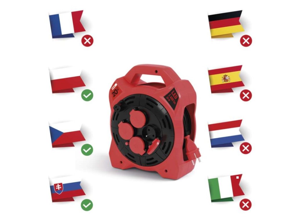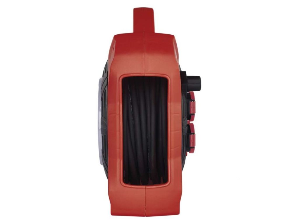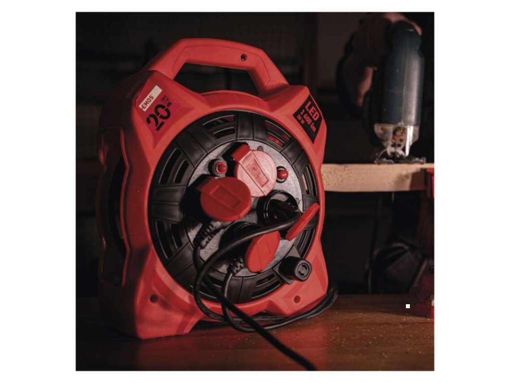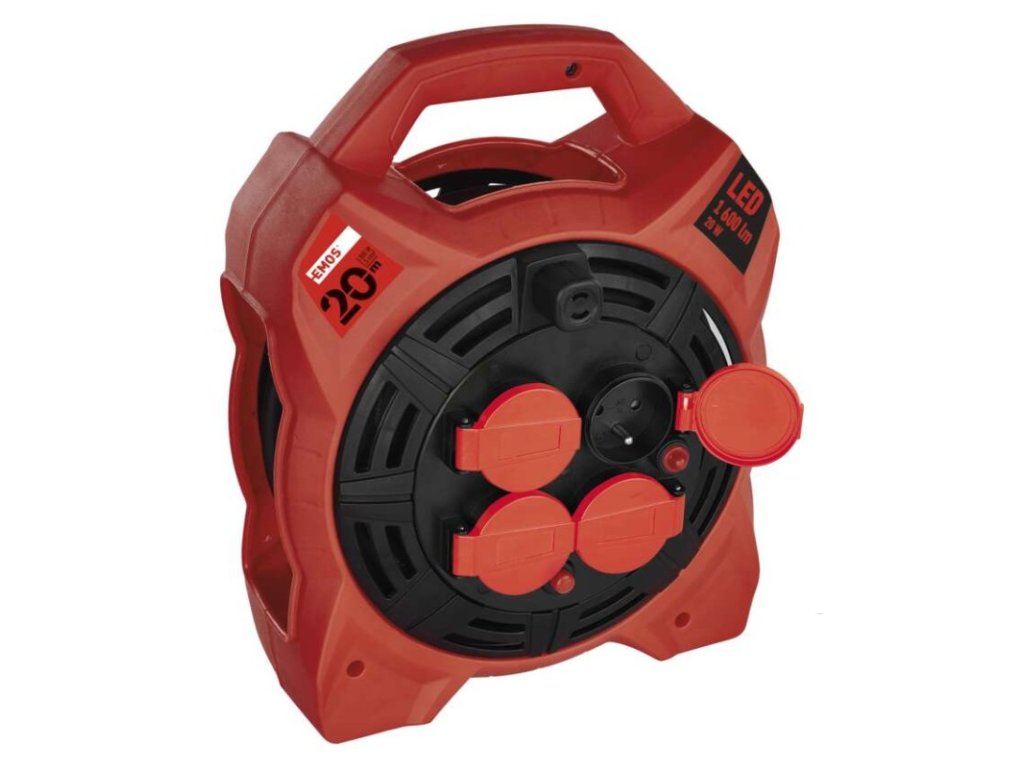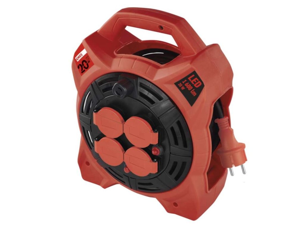 barva kabelu: červená/černá|další funkce: LED reflektor 20 W/1 600 lm/6 500 K|délka: 20 m|dětské clonky: ne|hmotnost: neuvádí se|krytí: IP44|max. zatížení navinutého: 4,35 A max./1 000 W|max. zatížení rozvinutého: 13,04 A max./3 000 W|napětí: 230 V~|počet zásuvek: 4|prodejní obal: 1 ks, krabice|produkt: buben s pohyblivým středem|proud: 13 A|průřez vodiče: 1,5 mm²|rozměr: 247 × 157 × 310 mm|tepelná pojistka: ano|typ izolace: guma|vodič: H05RR-F3G|záruční doba: 3 rokyDoplňkové parametry