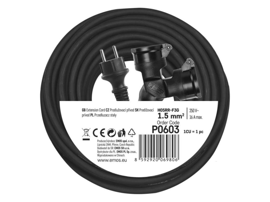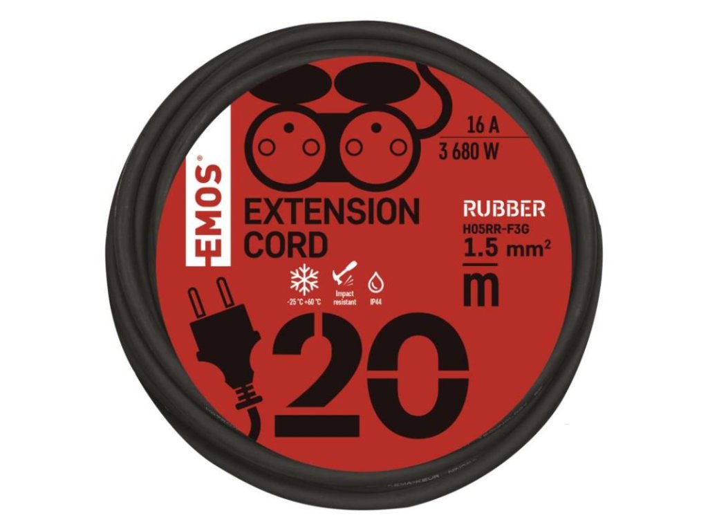 barva kabelu: černá|další funkce: ne|délka: 20 m|dětské clonky: ano|hmotnost: neuvádí se|krytí: IP44|max. zatížení navinutého: neuvádí se|max. zatížení rozvinutého: 16 A max./3 680 W|napětí: 230 V~|počet zásuvek: 2|prodejní obal: 1 ks, sáček|produkt: prodlužovací přívod – spojka|proud: 16 A|průřez vodiče: 1,5 mm²|rozměr: neuvádí se|tepelná pojistka: ne|typ izolace: guma|vodič: H05RR-F3G|záruční doba: 2 rokyDoplňkové parametry