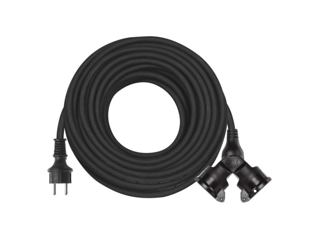 Venkovní prodlužovací kabel 25 m / 2 zásuvky / černý / guma / 230 V / 1,5 mm2