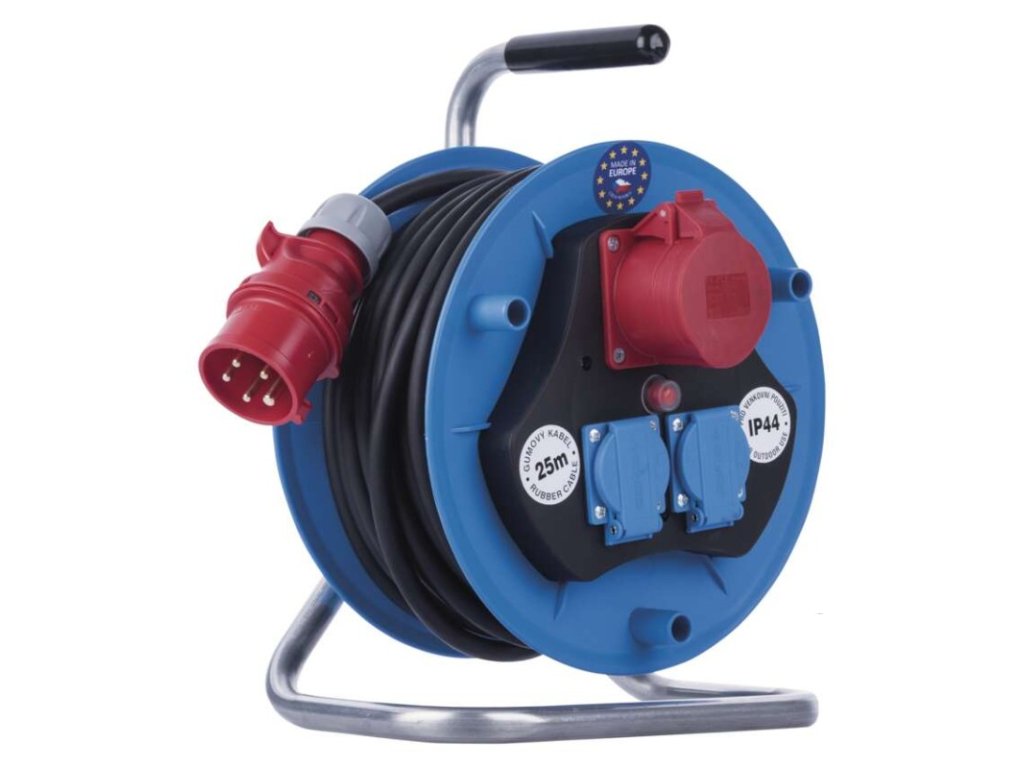 barva kabelu: černá|další funkce: ne|délka: 25 m|dětské clonky: ano|hmotnost: neuvádí se|krytí: IP44|max. zatížení navinutého: 230 V~: 4,35 A max./1 000 W; 400 V~: 6,25 A max./2 500 W|max. zatížení rozvinutého: 230 V~: 13 A max./3 000 W; 400 V~: 12,5 A max./5 000 W|napětí: 230 V~/400 V~|počet zásuvek: 3|prodejní obal: 1 ks, krabice|produkt: buben s pohyblivým středem|proud: 13 A|průřez vodiče: 1,5 mm²|rozměr: neuvádí se|tepelná pojistka: ano|typ izolace: guma|vodič: H07RN-F5G|záruční doba: 2 rokyDoplňkové parametry