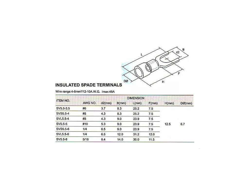 Vidlička kabelová 6,5mm žlutá (SVS 5,5-6)Doplňkové parametry