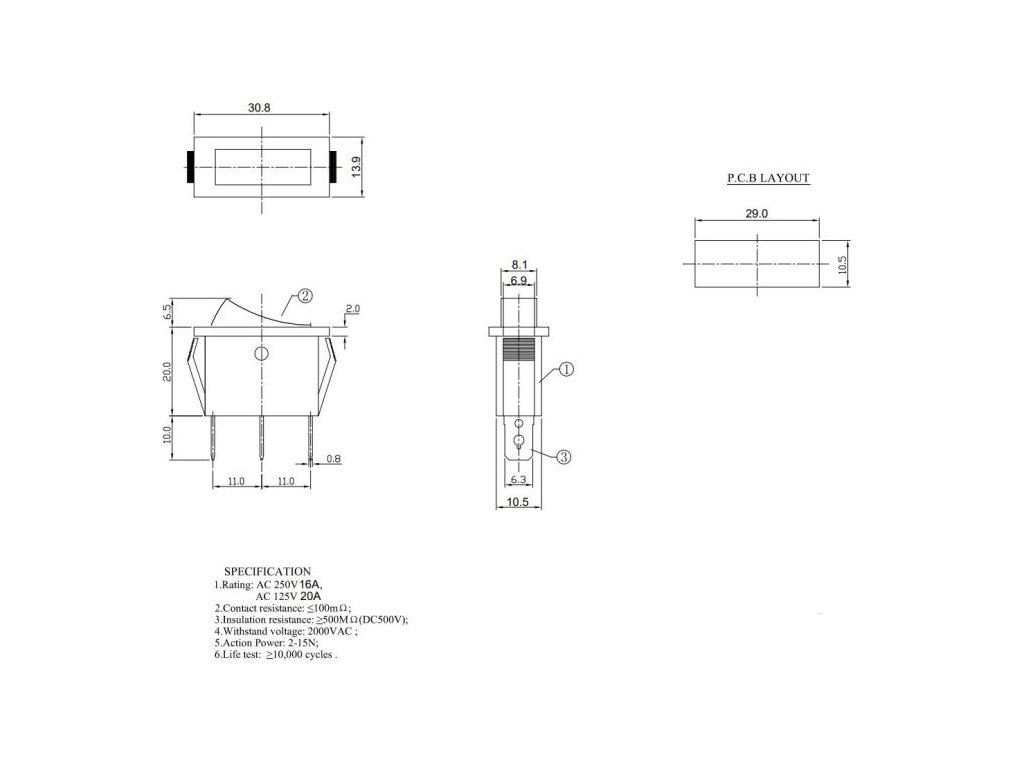 Vypínač kolébkový IRS-101-1C 1pol.250V/15A, červený, prosvětlení 230VDoplňkové parametry