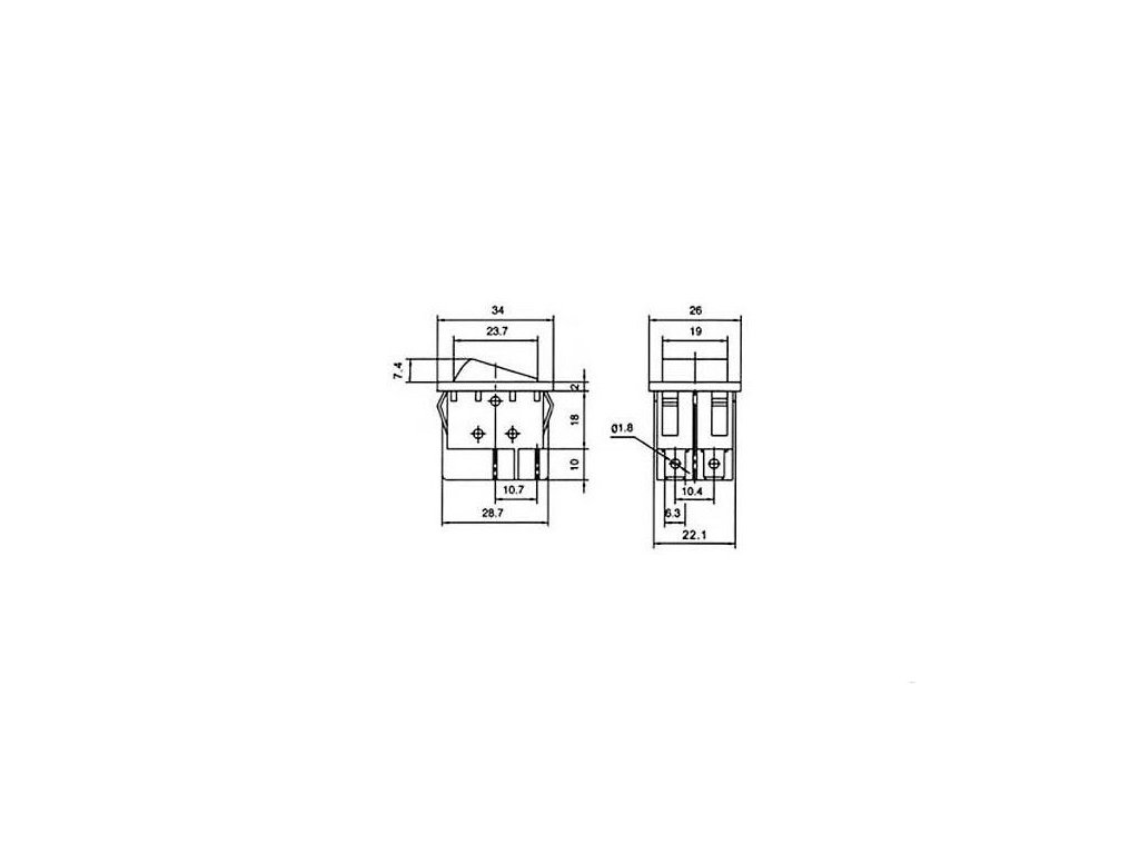 Vypínač kolébkový IRS-201-3A, ON-OFF 2pol.250V/15A zelený, prosvětlenýDoplňkové parametry