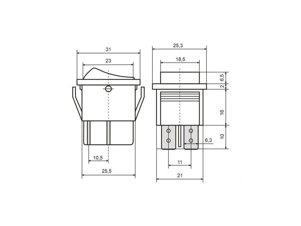 Vypínač kolébkový KCD4, OFF-ON 2pol.250V/16A žlutý, prosvětlenýDoplňkové parametry
