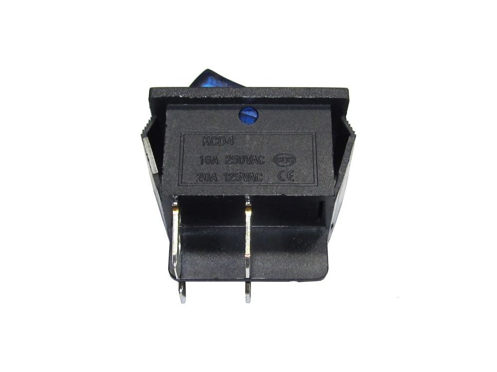 Vypínač kolébkový KCD4, ON-OFF 2pól.250V/16A modrý, prosvětlený