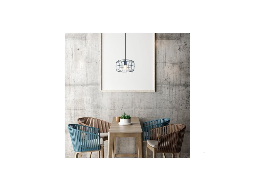 Závěsné svítidlo Xenia v průmyslovém stylu bude charakteristickým kusem nábytku ve vašem moderním obývacím pokoji nebo jídelně. Tento modrý model je zcela vyroben z kovu; svítidlo je možné připevnit na strop pomocí malého kulatého ozdobného podstavce. Vzhled svítidla je jedinečný díky stínídlu s kovovou mřížkou připomínající klec a její zvláštnímu tónu. Hlava svítidla je spojena s ozdobným podstavcem textilním kabelem. Svítidlo Xenia lze použít s jednou žárovkou s výkonem až 60W. Typ patice je E27. Pokud chcete dosáhnout v místnosti čistý a moderní efekt pomocí osvětlení, vyberte si pro toto svítidlo přírodní bílý světelný zdroj. Rozměry závěsného svítidla jsou následující: průměr stínítka je 300 mm, jeho výška je 185 mm, vzdálenost od stropu 1 750 mm, instalační průměr 100 mm. Tento model se dodává bez světelného zdroje.