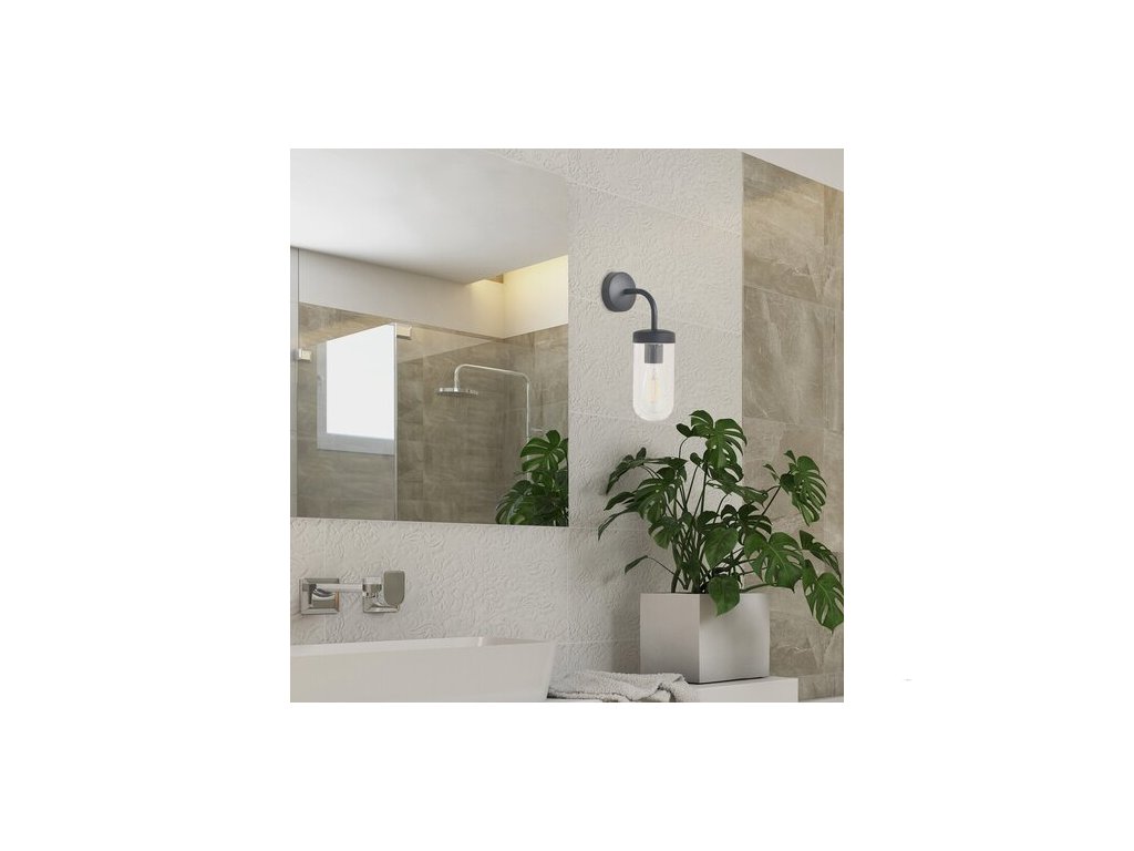 Moderní koupelnové svítidlo Yago doporučujeme především instalovat nad zrcadlo doplňující umyvadlo, ale můžete jej umístit i na terasu nebo kdekoli jinde na vnější stěnu domu. Tento model sestávající z hliníkového svítidla černé barvy a válcového stínítka z průhledného skla lze použít s jednou žárovkou o výkonu až 60 W. Typ patice je E27. Svítidlo Yago lze upevnit na zeď pomocí kulatého dekorativního podstavce v černé barvě. Krytí IP44 tohoto svítidla zajišťuje jeho ochranu proti vniknutí předmětů do průměru 1 mm a proti stříkající vodě z jakéhokoli směru. Rozměry tohoto koupelnového nástěnného svítidla jsou následující: šířka 97 mm, výška 325 mm, vzdálenost od stěny 170 mm, instalační průměr 90 mm. Tento model je dodáván bez světelného zdroje.