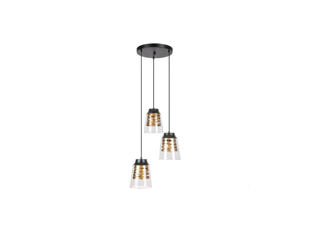 Trojité závěsné svítidlo Zenaida v moderním stylu bude útulným doplňkem k zařízení vašeho moderního obývacího pokoje, ložnice, jídelny nebo dokonce kuchyně. Matné černé svítidlo vyrobené z kovu je doplněno průhlednými skleněnými stínítky, z nichž každý má uvnitř světelný zdroj, který má zlatou stužkovou výzdobu. Toto závěsné svítidlo lze připevnit na strop pomocí velkého kulatého ozdobného podstavce. Hlavy svítidla visící v různých výškách jsou spojeny s ozdobným podstavcem textilními kabely. Každá hlava svítidla Zenaida je jako velkolepá a lahodná kávová specialita naplněna ve sklenici s dvojitým sklem, který visí vzhůru nohama na stěně. Tento model je možné použít s třemi žárovkami, každá s výkonem až 60W. Typ patice je E27. Pokud chcete vylepšit intimní a útulnou atmosféru, vyberte si pro toto svítidlo teplé bílé světelné zdroje. Rozměry trojitého závěsného svítidla jsou následující: průměr 400 mm, vzdálenost od stropu 1 200 mm, instalační průměr 275 mm. Tento model se dodává bez světelných zdrojů.