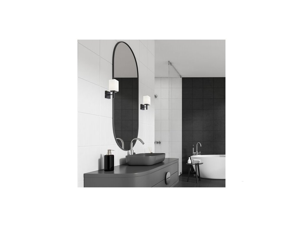 Koupelnové nástěnné svítidlo Zenkai je vlastním designovým řešením společnosti Rábalux, které poskytuje příjemné osvětlení ve vaší moderní koupelně. Matnou černou kovovou lampu doplňuje bílé skleněné stínítko ve tvaru hranolu a lze ji připevnit na zeď pomocí čtvercového ozdobného podstavce. Rameno vycházející kolmo z matného černého podstavce je spojeno s prvkem ve tvaru písmene T, který podobně jako držák fakle nese hranatou hlavu lampy. Nástěnnou lampu lze použít s jedním světelným zdrojem s maximálním příkonem do 10 W, typ patice E14. Chcete-li mít v koupelně moderní a čistý vzhled, měli byste si pro tento model vybrat přirozeně bílou žárovku. Krytí IP44 svítidla Zenkai zaručuje, že je chráněno proti vniknutí pevných předmětů větších než 1 mm a proti stříkající vodě z jakéhokoli směru. Koupelnová lampa má tyto rozměry: šířka 100 mm, výška 245 mm, vzdálenost od stěny 155 mm, instalační průměr 100 mm. Tento model se dodává bez světelného zdroje.