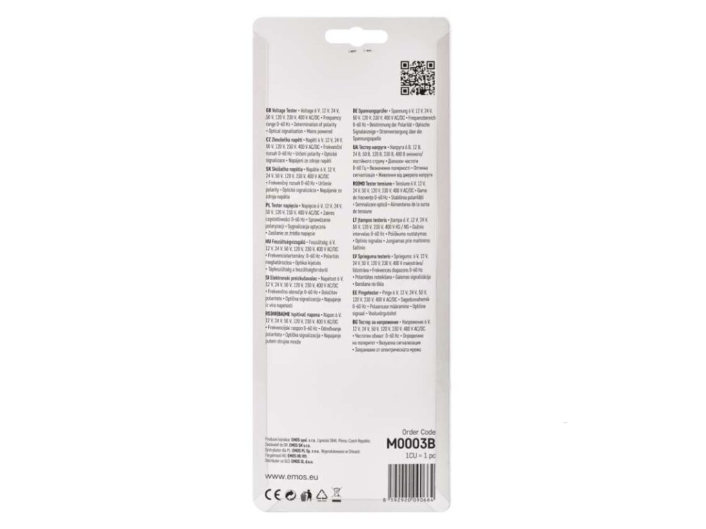 bezkontaktní měření: ne|frekvenční rozsah: 0–60 Hz|měření spojitosti obvodů: ne|napájení: ze zdroje napětí|nastavení dvou citlivostí: ne|prodejní obal: 1 ks, blistr|signalizace: optická|stejnosměrné a střídavé napětí: 6 V, 12 V, 24 V, 50 V, 120 V, 230 V, 400 V|stejnosměrné napětí: 6–400 V|střídavé napětí: 6–400 V|určení fáze a sledu: ne|určení polarity: anoDoplňkové parametry
