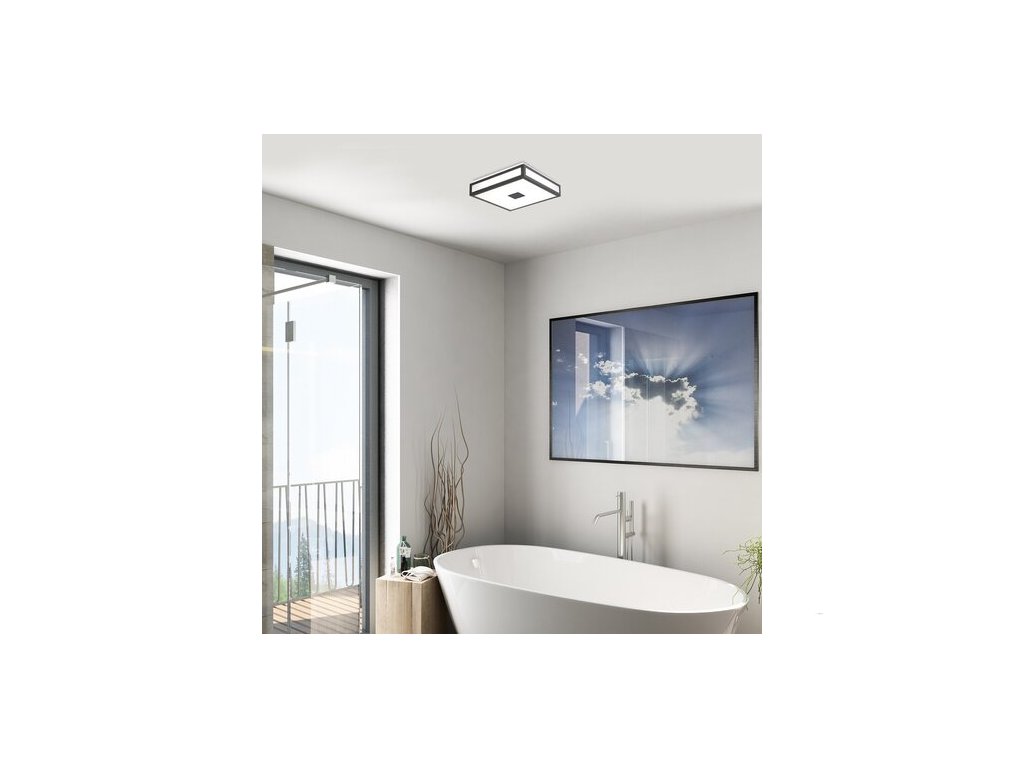 Koupelnová stropní svítilna Zoya v retro stylu nabízí praktické a prostorově úsporné řešení osvětlení koupelny. Čtvercový model v černé barvě je vyroben z kovu a je doplněn bílým skleněným stínítkem. Díky čistému designu a černobílé barevné kombinaci se Zoya diskrétně začlení do zařízení koupelny. Stropní svítidlo má zabudovaný LED světelný zdroj energetické třídy F o výkonu 18 W, svítivostí 1350 lumenů se stínítkem, 1750 lumenů bez stínítka. Zdroj světla s barevnou teplotou 4000 K má velmi dlouhou životnost: Bude vám sloužit až 30 000 hodin! Svítilna Zoya osvětluje přirozeným bílým světlem, vytváří v koupelně moderní, čistý efekt. Krytí IP44 zaručuje, že tento model je chráněn proti vniknutí pevných předmětů větších než 1 mm a proti stříkající vodě z jakéhokoli směru. Rozměr stropního svítidla je 300x300 mm, vzdálenost od stropu 90 mm.